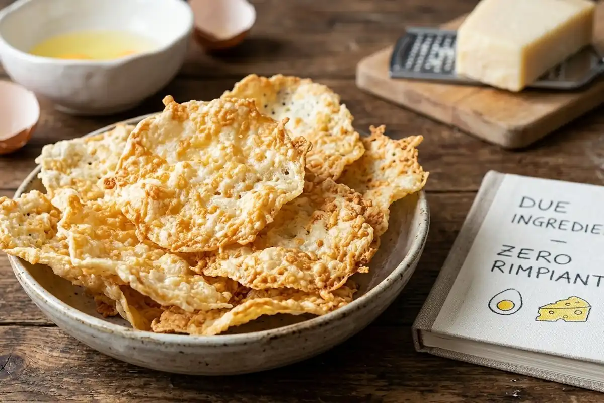 Ho cambiato completamente registro: questa volta faccio uno snack keto da lunedì, qualcosa di pratico che si prepara in pochi minuti e risolve quella voglia di sgranocchiare a metà mattina o nel pomeriggio. Protagoniste: le chips di albumi e pecorino, due soli ingredienti, croccantissime, zero sensi di colpa.